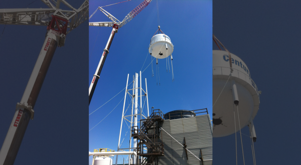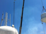 Once the replacement container was ready, the existing tank was drained and the container was cut and removed from the structure. Just as the old container was set on the ground, the crane swung to the new container, already rigged, and placed it atop the support structure. It all happened within hours, allowing the connection points to be welded quickly into place with minimal coating touch-ups. The tank was returned to service within 48 hours of cutting loose, and the re-coating of the support structure continued to completion.