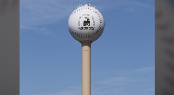 This unique 250,000-gallon sphere proudly serves the City of Pigeon Forge, TN, and overlooks the Cal Ripken Jr. Baseball Experience. Phoenix worked closely with the facility and the City to design a tank that would be only fitting for this environment, a baseball. The high-performance fluoropolymer coating system was carefully stenciled to represent the seams of the baseball as well as the logo for the City of Pigeon Forge. Phoenix was proud to have been a part of the dedication of this tank that serves the City and the wonderful baseball facility it overlooks.